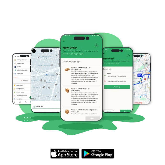 Esta aplicación permite al cliente enviar y recibir paquetes en línea, buscar la paquetería adecuada o el tamaño del paquete que quiere enviar, recibir una cotización instantánea, hacer sus envíos y pagar fácilmente.