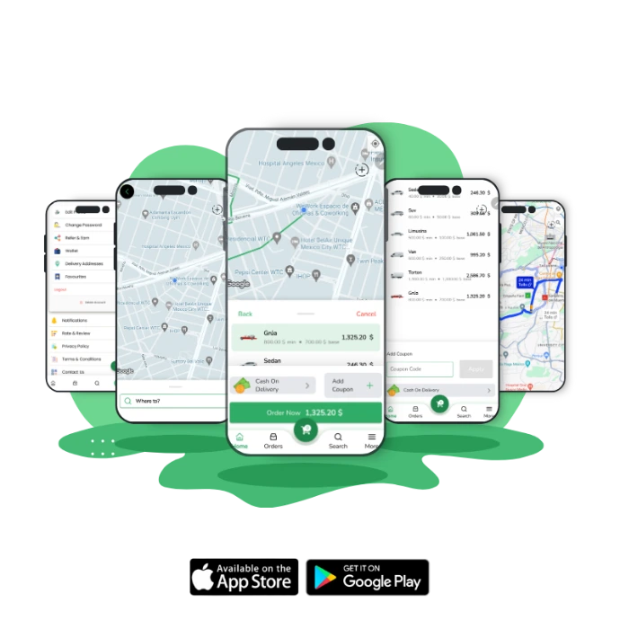 Esta aplicación permite al cliente pedir transporte en línea, buscar conductores cercanos o hacer su solicitud al instante y pagar fácilmente.
