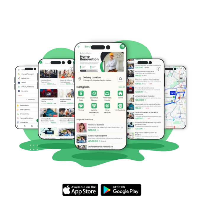 Esta aplicación permite al cliente pedir servicios en línea, buscar el proveedor adecuado o la solución que requiere, hacer sus pedidos y pagar fácilmente.